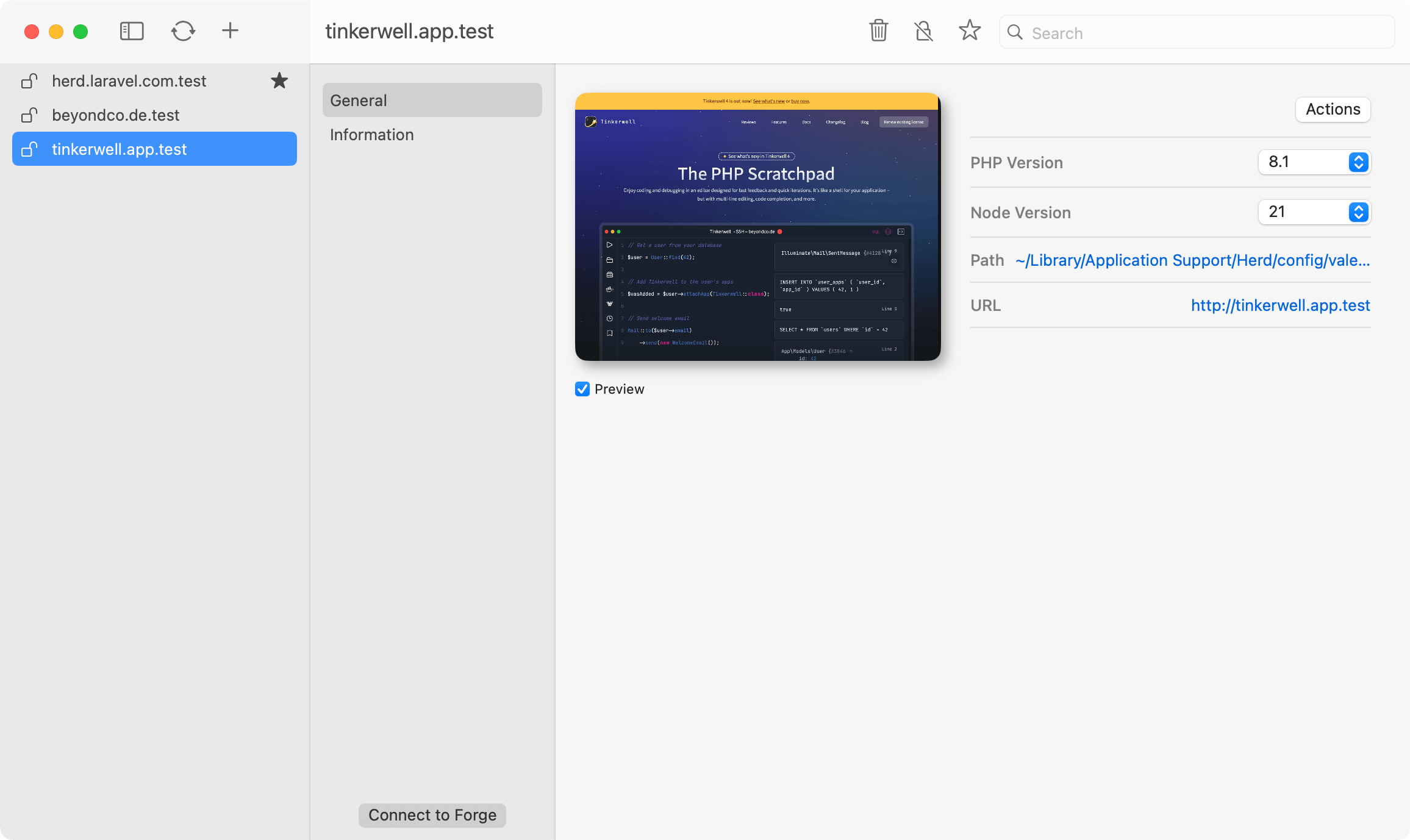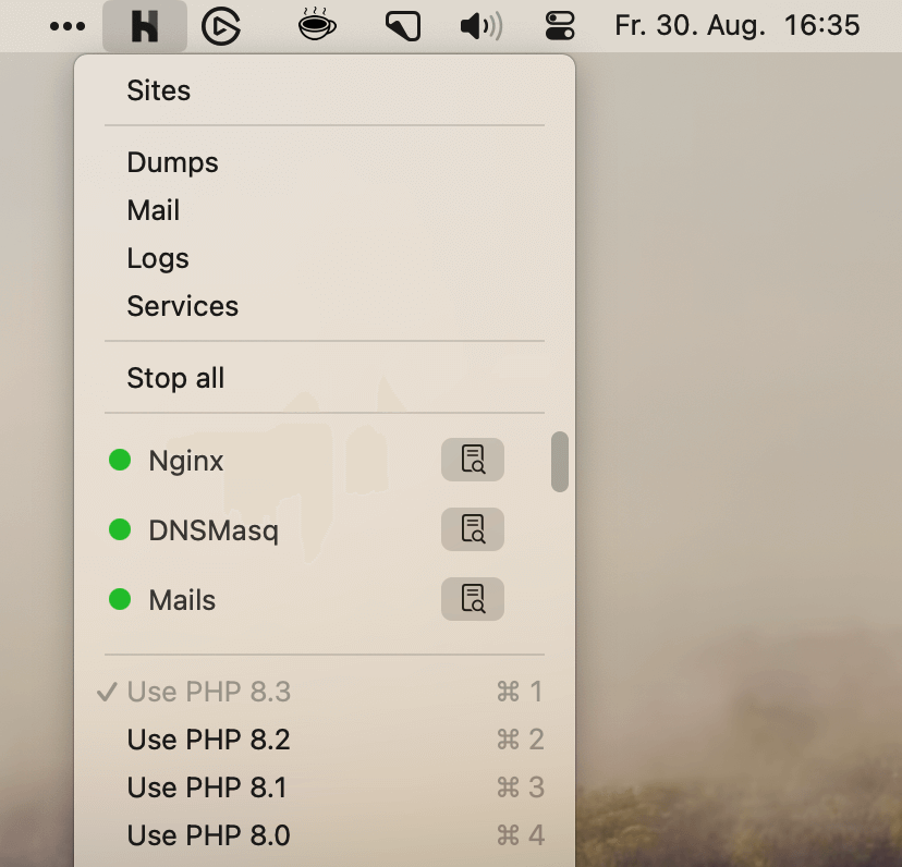 Herd ships with the latest stable PHP version by default. Currently, that's PHP 8.3. However, you may install and use different PHP versions for your sites and configure Herd that every project uses the version that it needs.